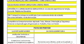 Sine Faro Informa: Estamos Com 1 Vaga Aberta na Empresa RIP, para Função De: Operador de Plataforma