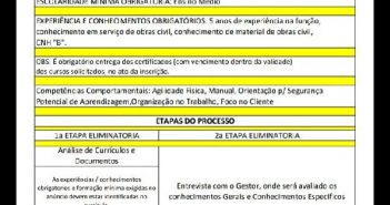 Sine Faro Informa: Estamos Com 1 Vaga Aberta na Empresa RIP, para Função De: Encarregado Civil
